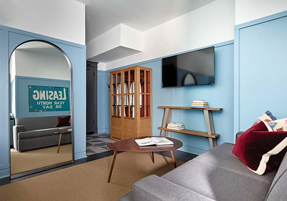 This room features a 50-inch flat-screen Smart TV, plush bathrobes, in-room dining, a garment steamer and rooftop access.
